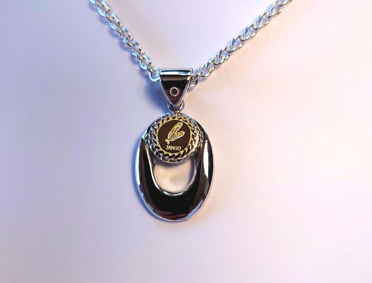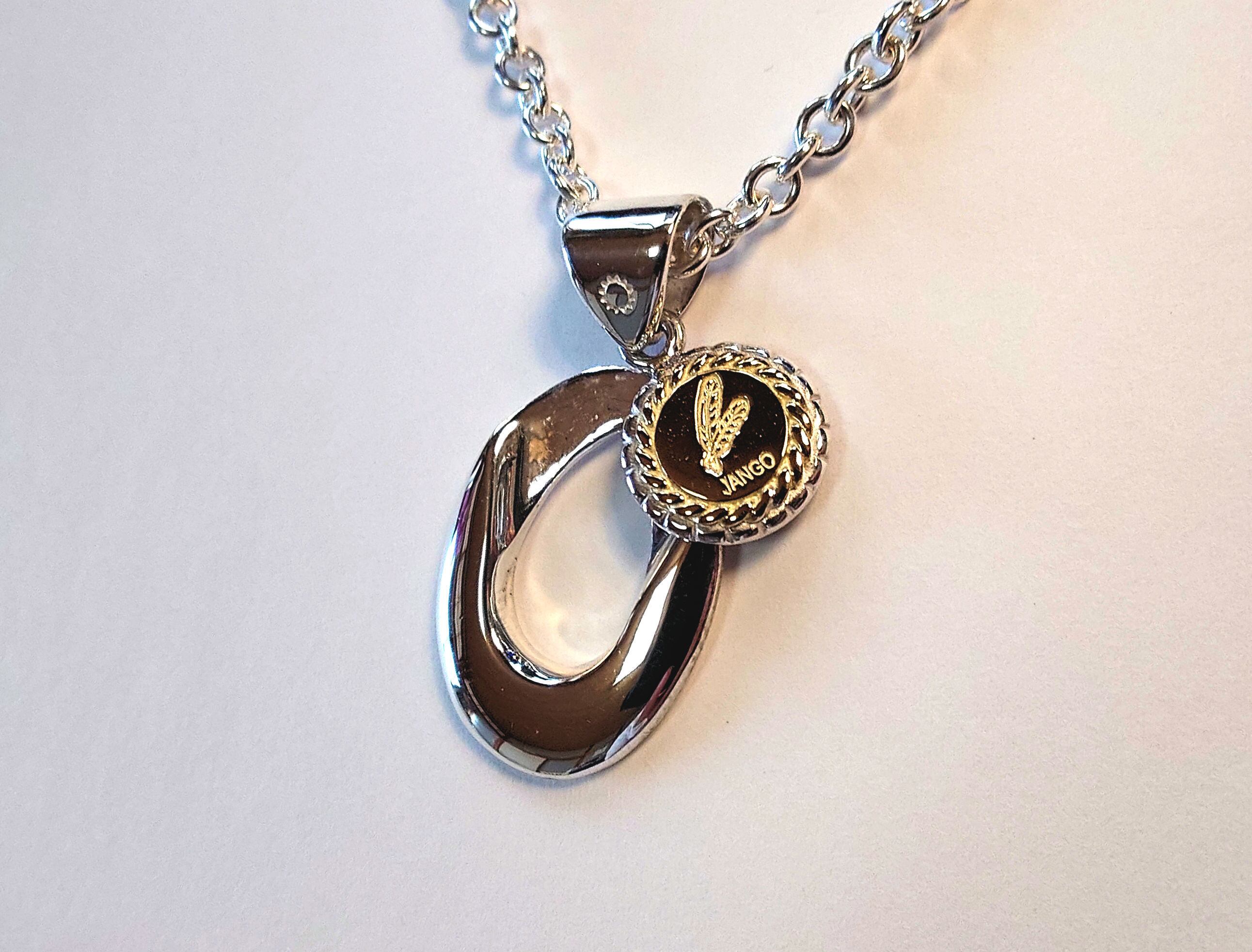 伝統的な楕円フォルムに、ロゴマーク入りチャームを纏わせたペンダント。